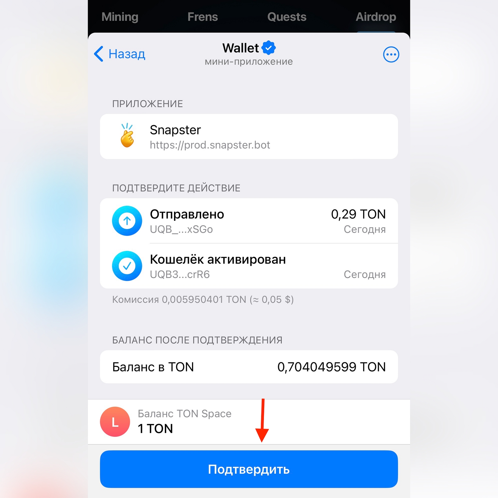 Подтверждаем транзакцию в кошельке.